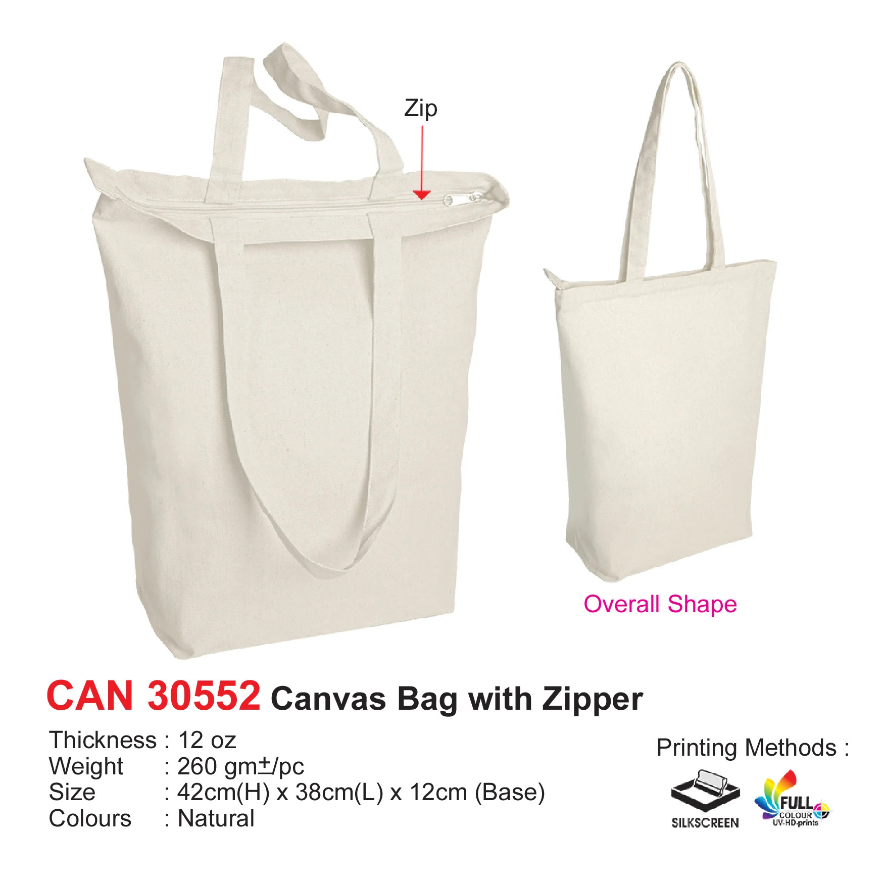 Canvas Bag with Zipper 12oz (CAN30552) quantity