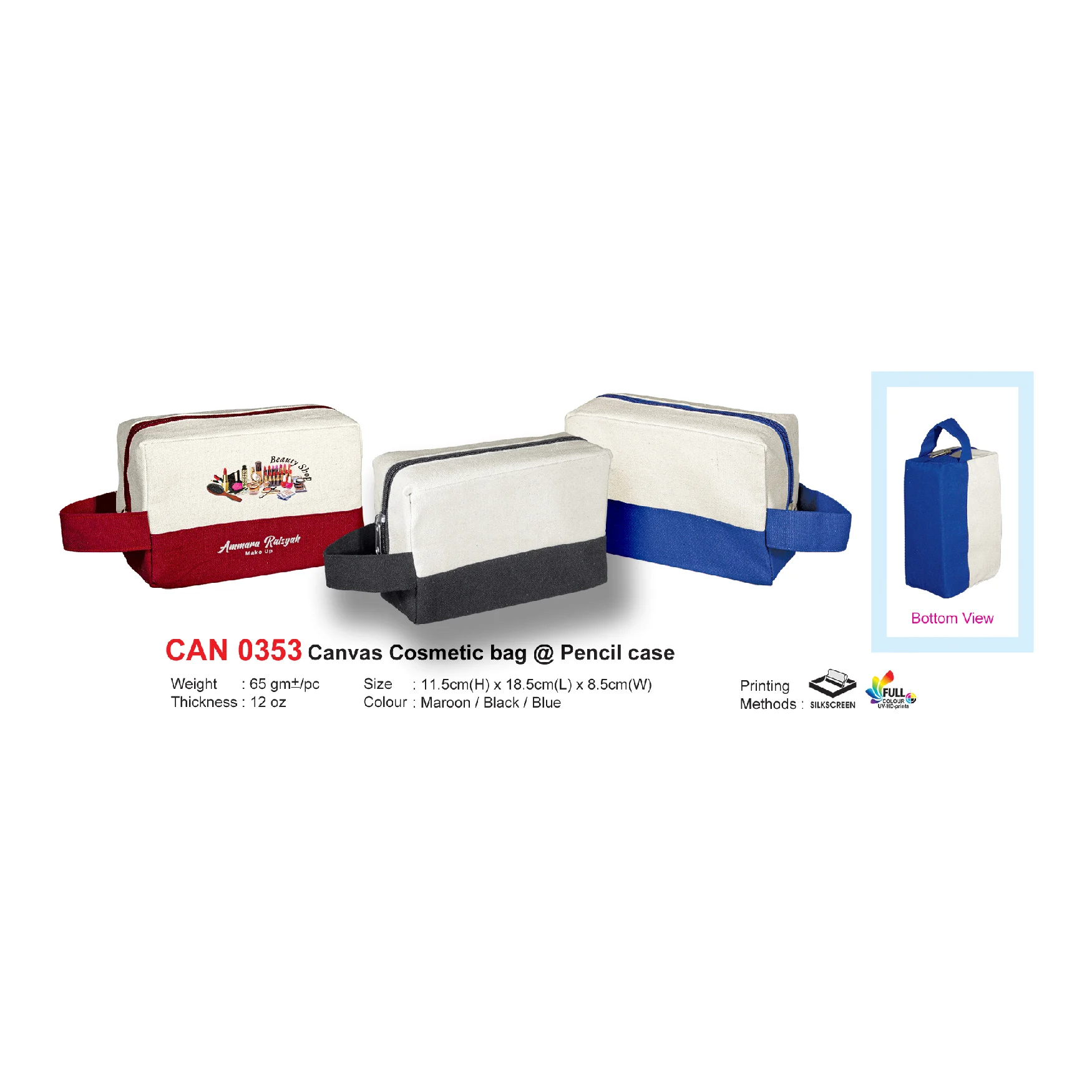 Canvas Cosmetic Bag @ Pencil Case 12oz (CAN0353) quantity