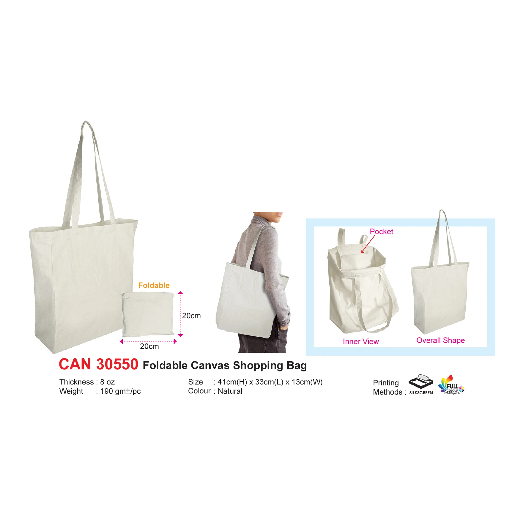 Foldable Canvas Shopping Bag 8oz (CAN30550) quantity