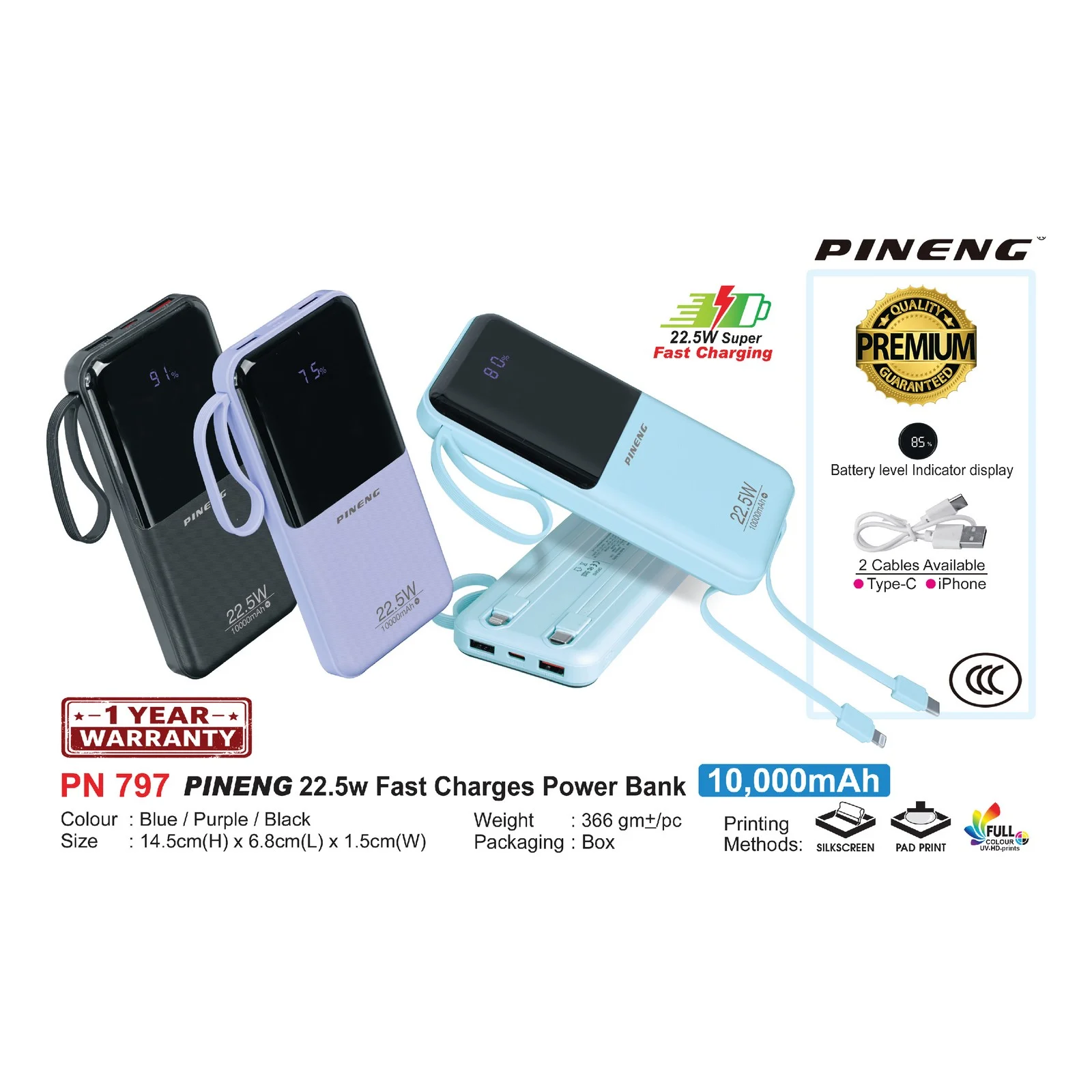 Pineng 22.5w Fast Charges Power Bank 10000mAh (PN797)
