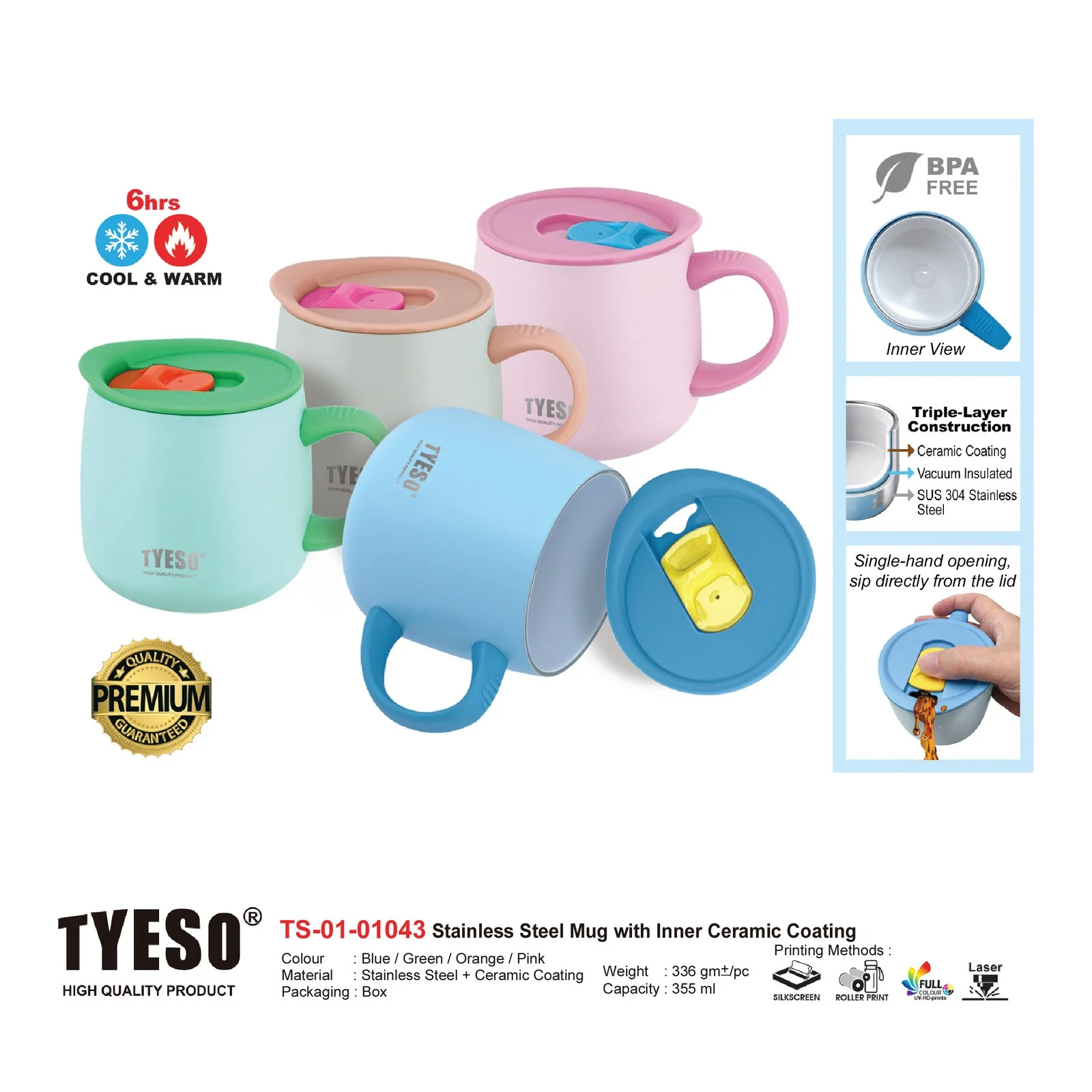 Stainless Steel Mug with Inner Ceramic Coating (TS-01-01043) quantity