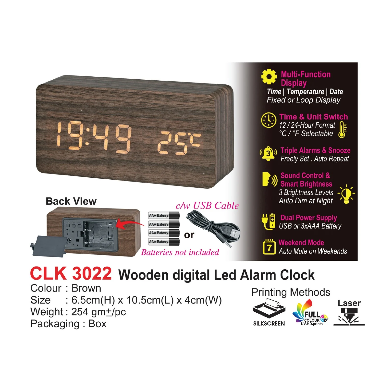 Wooden Digital Led Alarm Clock (CLK3024)