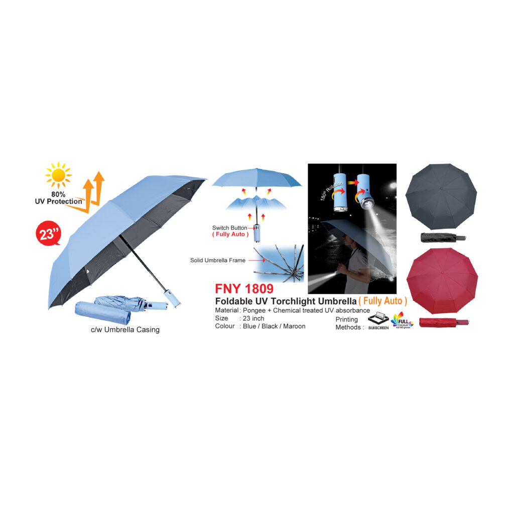 Foldable UV Torchlight Umbrella ( Fully Auto ) (FNY1809 (with cover))